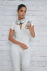 Enterizo largo hasta el tobillo, elaborado en tejido sin costuras y de alta resistencia, suave con tu piel. Con control abdomen, mangas cortas y cierre delantero.
