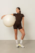 Enterizo corto en tejido seamless con control abdomen, mangas cortas y suave al tacto.